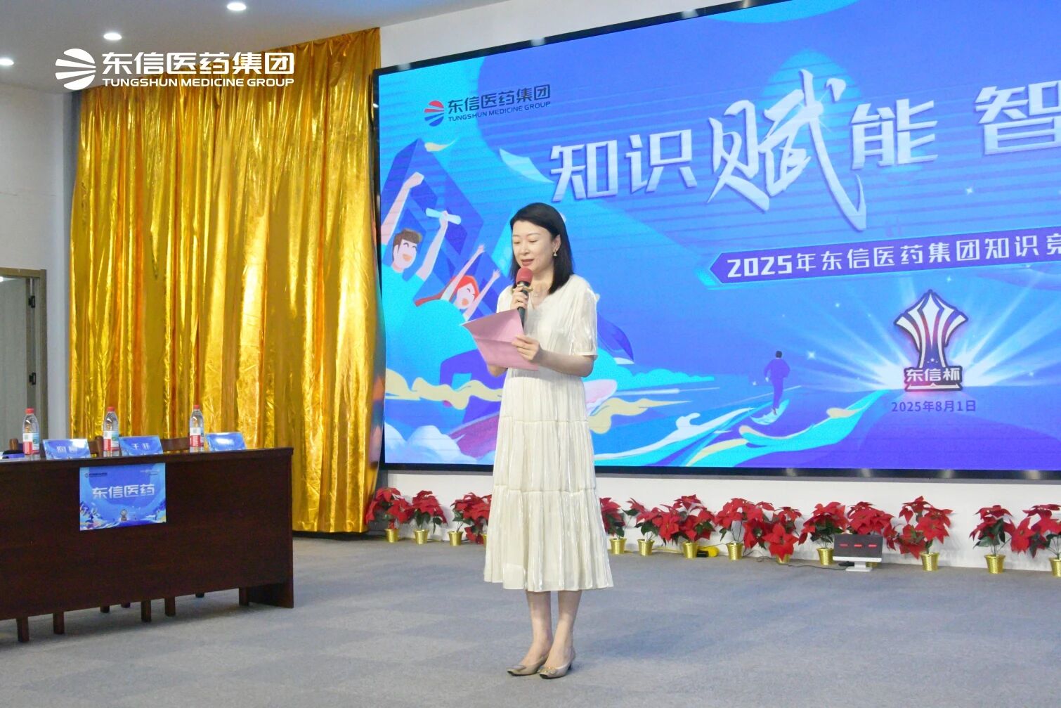 2025年8月1日,值中国人民解放军98周年建军纪念日之际,东信医药集团在武汉隆重举办了2025年“知识赋能,智胜未来”知识竞赛决赛。东信医药集团董事长田南希,湖北东信药业有限公司总经理黄少伟、武汉东信医药科技有限责任公司总经理陈长根、湖北东信医药有限公司总经理李建军等领导亲临现场,共同见证这场知识盛宴。来自东信药业、东信医药科技、东信医药的9位选手,从初赛500余名参赛者中层层淬炼而出,在此展开巅峰对决。